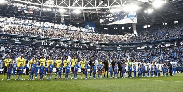 Rus taraftarlar, Zenit-Fenerbahçe maçına yoğun ilgi gösterdi. Stat çevresinde yer yer kalabalık oluşturan ve stadın yarıya yakınını dolduran taraftarlar, maç öncesi düzenlenen konserde şarkılar dinledi.