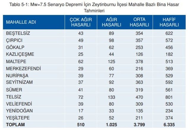 İBB olası deprem kayıpları tahminleri kitapçığında ilçe ilçe analizler ve haritalar yer alıyor. Ayrıca meydana gelebilecek bir depremde binaların hasar durum sayı tahminlerine de yer verildi.