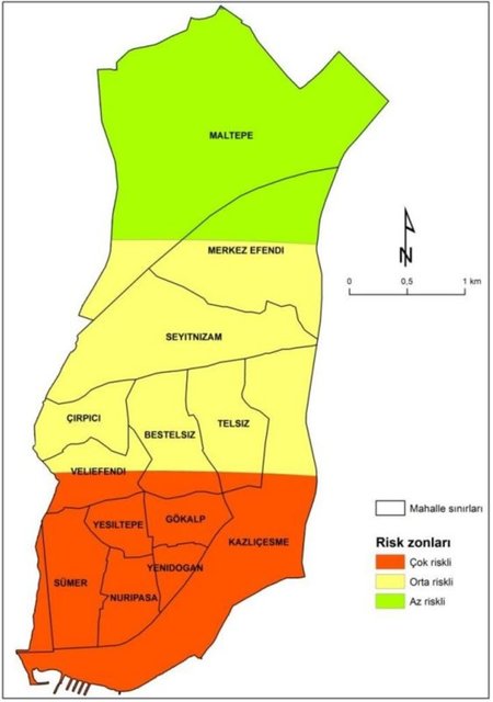 Buna göre Nuripaşa, Sümer, Yenidoğan, Gökalp ve Yeşiltepe mahallelerinin tamamı ve Kazlıçeşme, Veliefendi, Beştelsiz, Çırpıcı ve Telsiz mahallelerinin ise büyük bir kısmı fay hattına en yakın dolayısıyla en fazla hasar görebilecek zonda yer alırken,