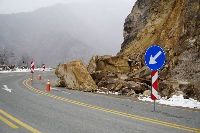 Yola düşen kayalar ekiplerce temizlenirken, kayaların büyüklüğü ise sürücüleri korkutuyor.