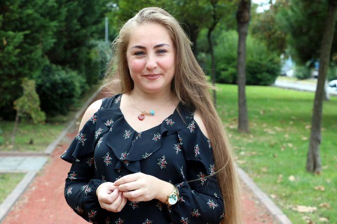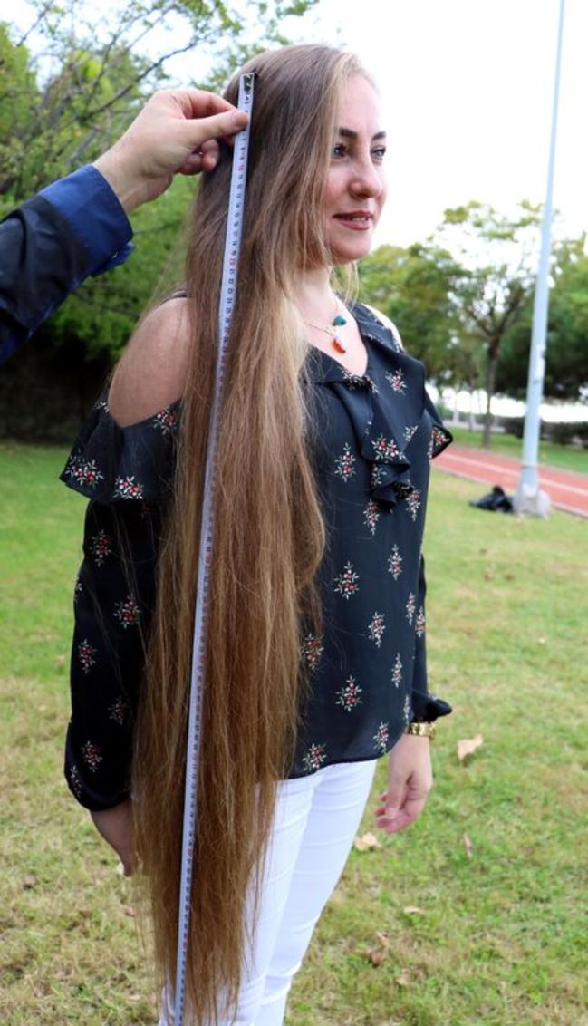 Zonguldak Tepebaşı Mahallesi'nde oturan Binnaz Karalı, 12 yıl önce kuzeninin uzun saçlarını elletmemesi üzerine kendi saçlarını uzatmaya karar verdi.