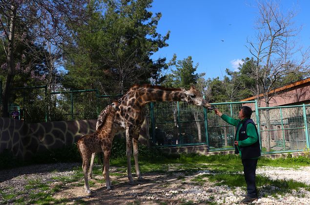 Gaziantep Doğal Yaşam Parkı'nın simgelerinden biri olan Şakir ve Selvi adlı zürafa çiftin dünyaya gelen erkek yavrusu ziyaretçilerle buluştu.